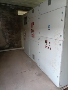配电室无防鼠板、无照明、无应急照明配电柜无警示标识。 |