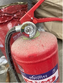现场灭火器被遮挡,一灭火器指针处于红区 |