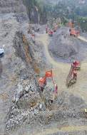490-505平台工作面挖机挖掘坡度过大,易造成边坡坍塌,505平台临边无安全警示标志 |