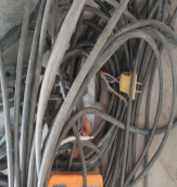 施工现场的乙炔气瓶无防回火装置,胶管有破口,胶管用铁丝绑扎 |