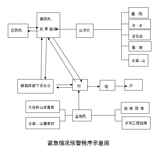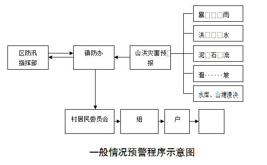 ①在一般情况下,预警程序为镇→村(居)民委员会→组→户的次序进行预警。