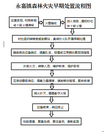 在森林火灾全部扑灭、火场清理验收合格经区森防指宣布终止应急响应后,永嘉镇森防指方可终止应急响应措施。