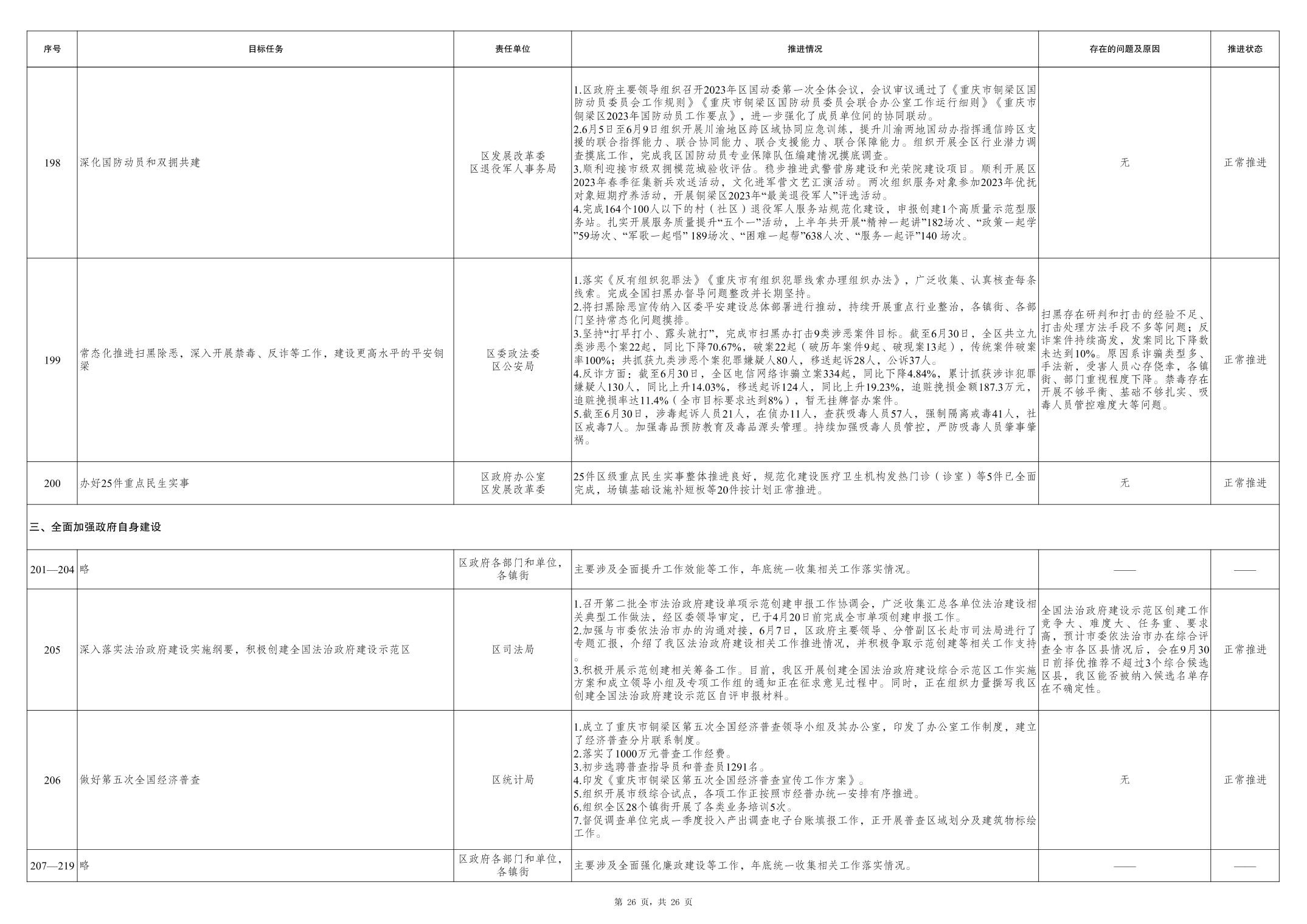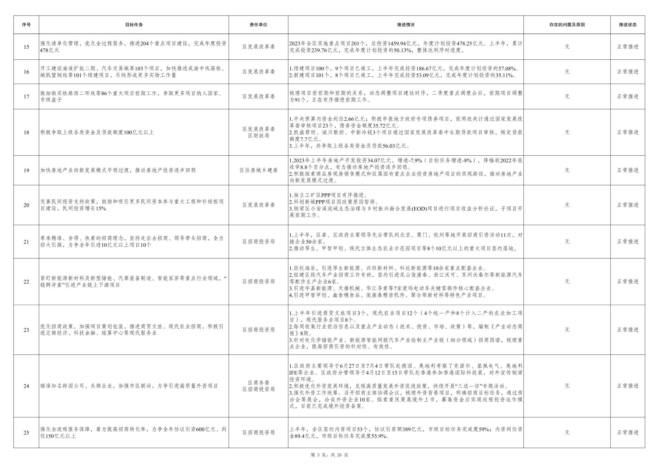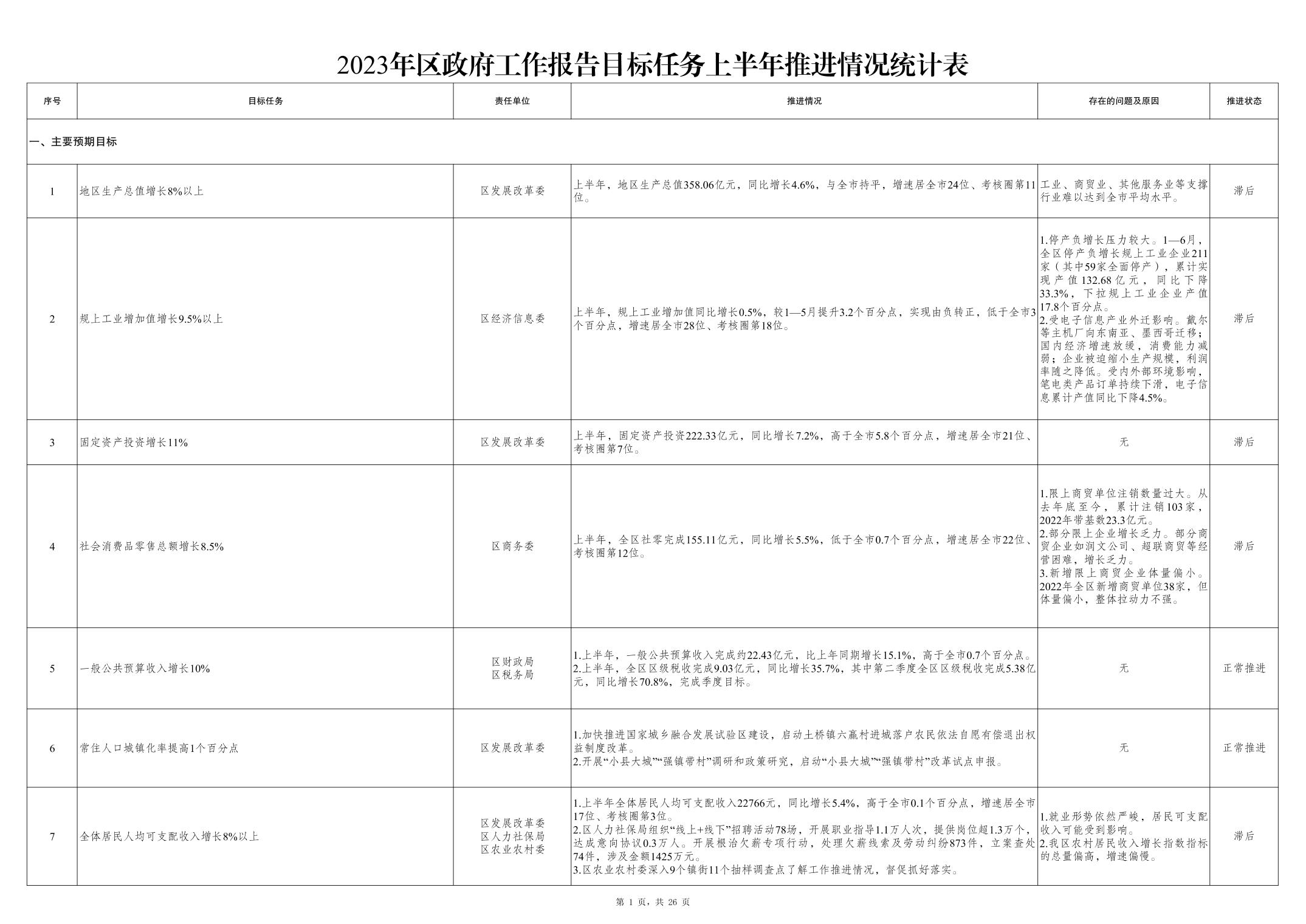 2023年区政府工作报告目标任务上半年进展情况统计表