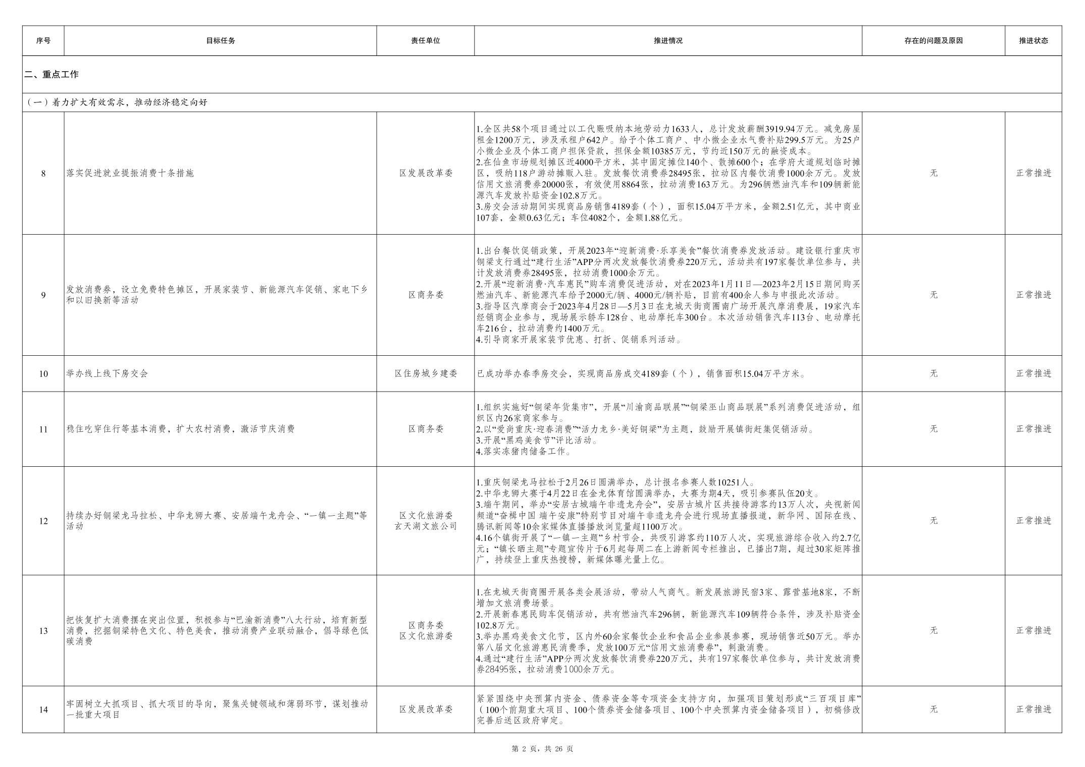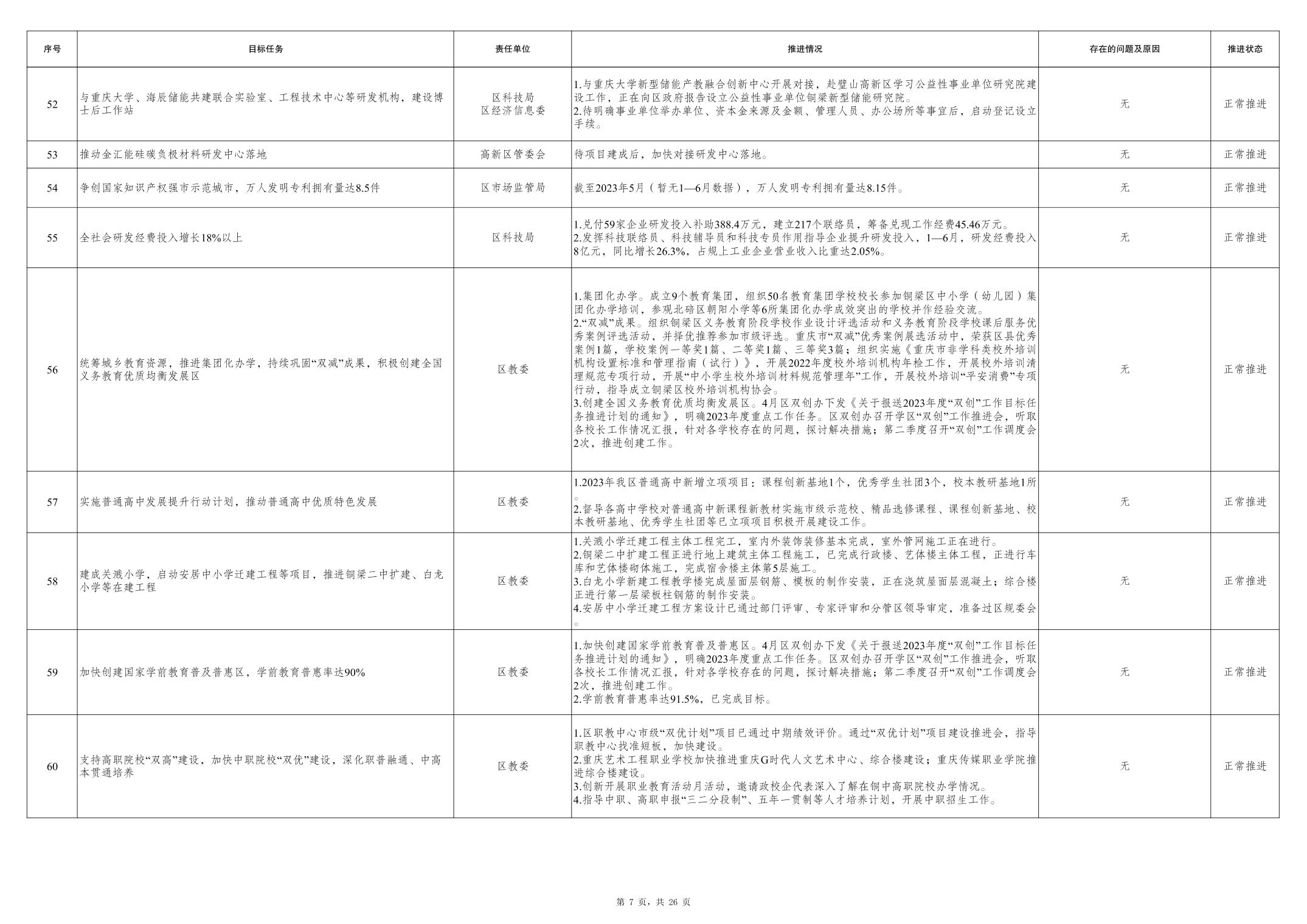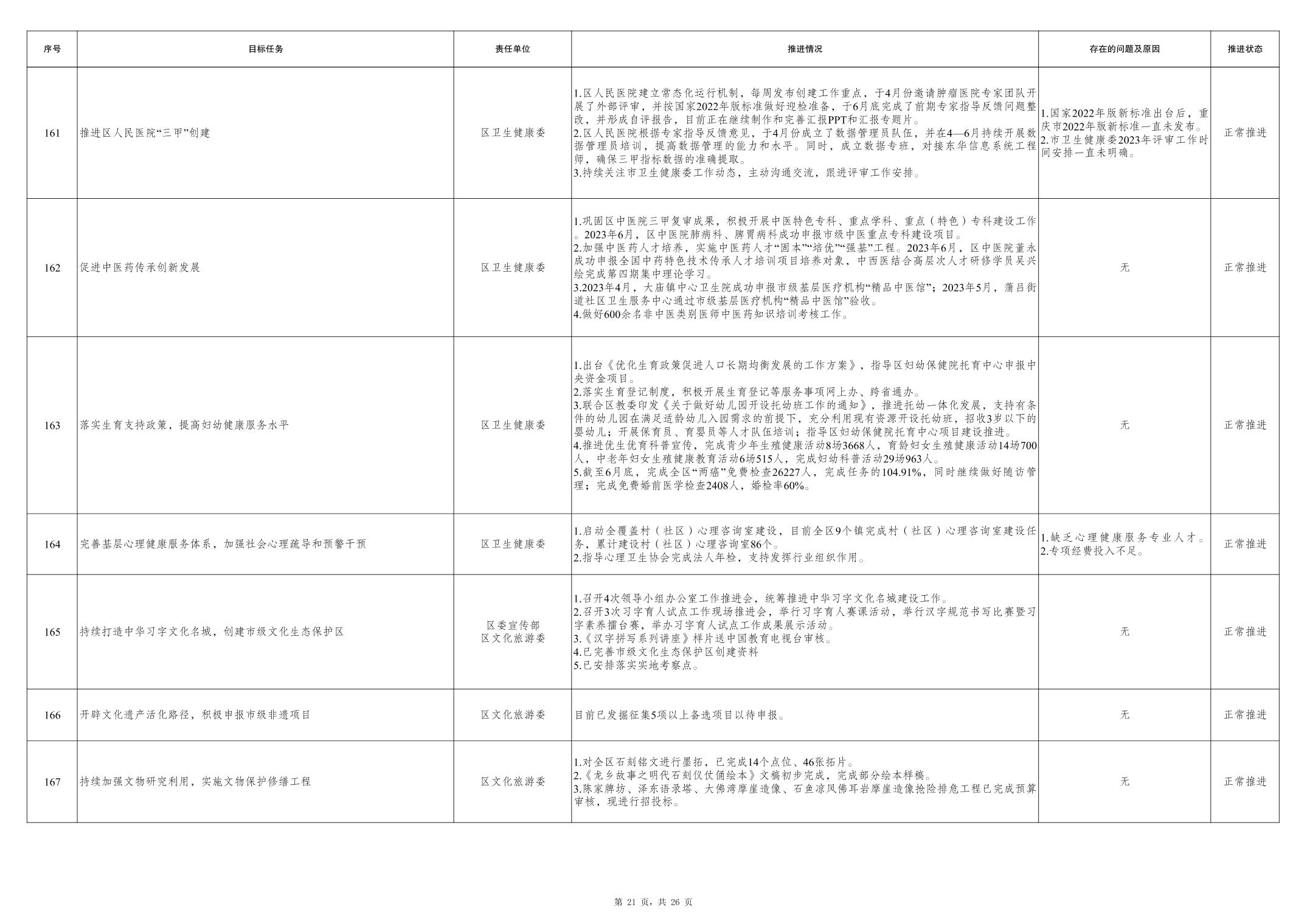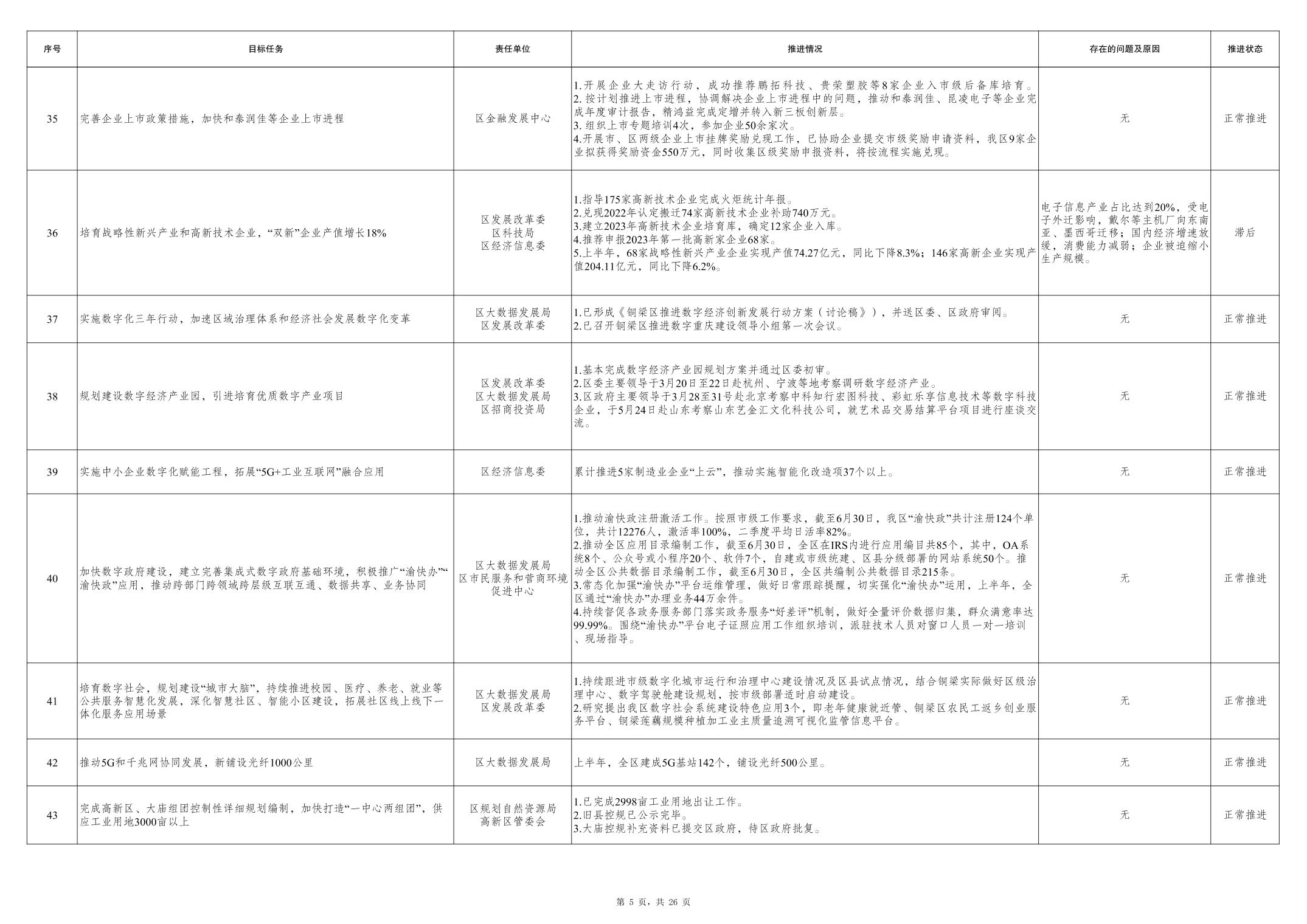 2023年区政府工作报告目标任务上半年进展情况统计表