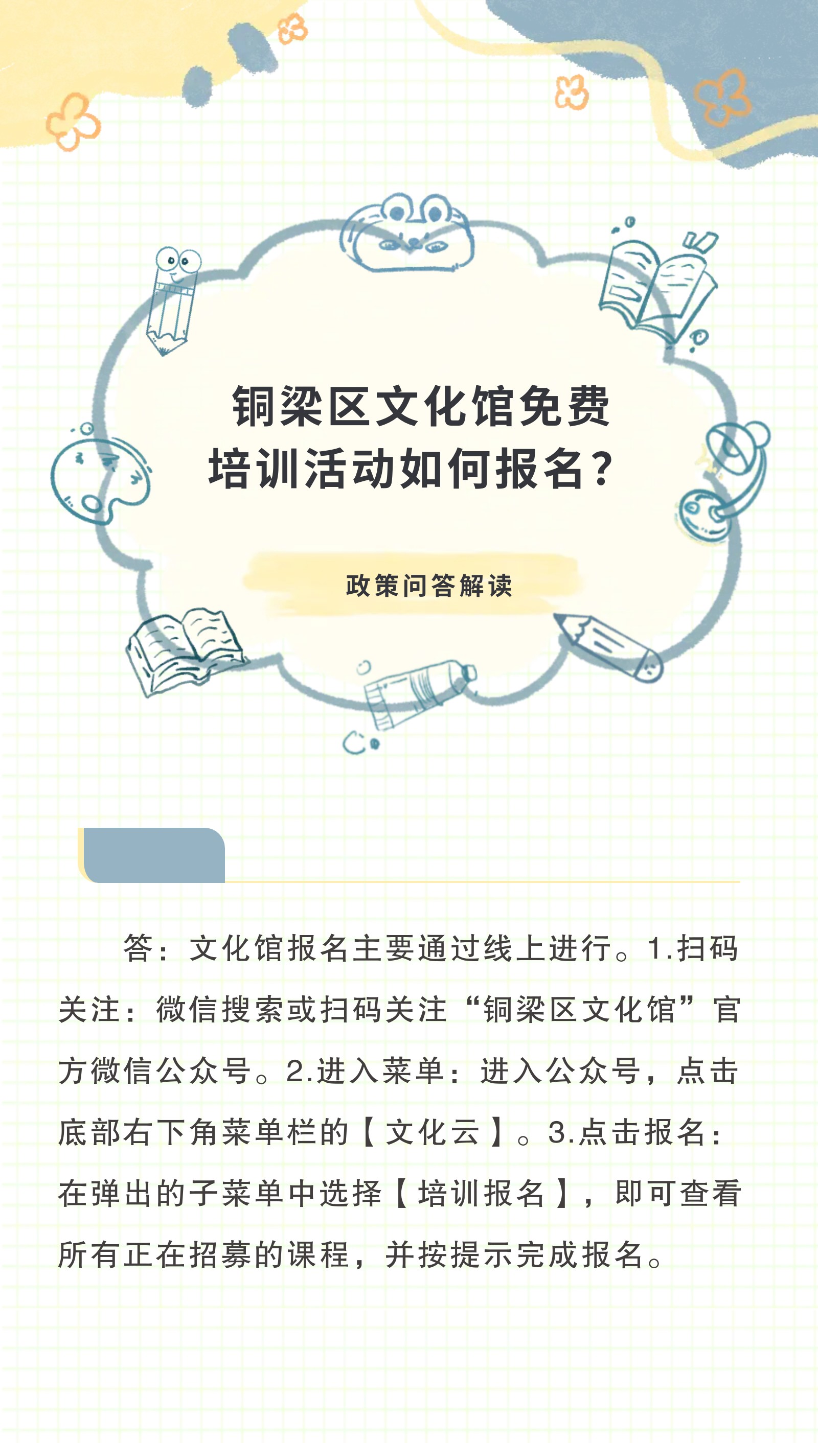 【政策问答图解】铜梁区文化馆免费培训活动如何报名?
