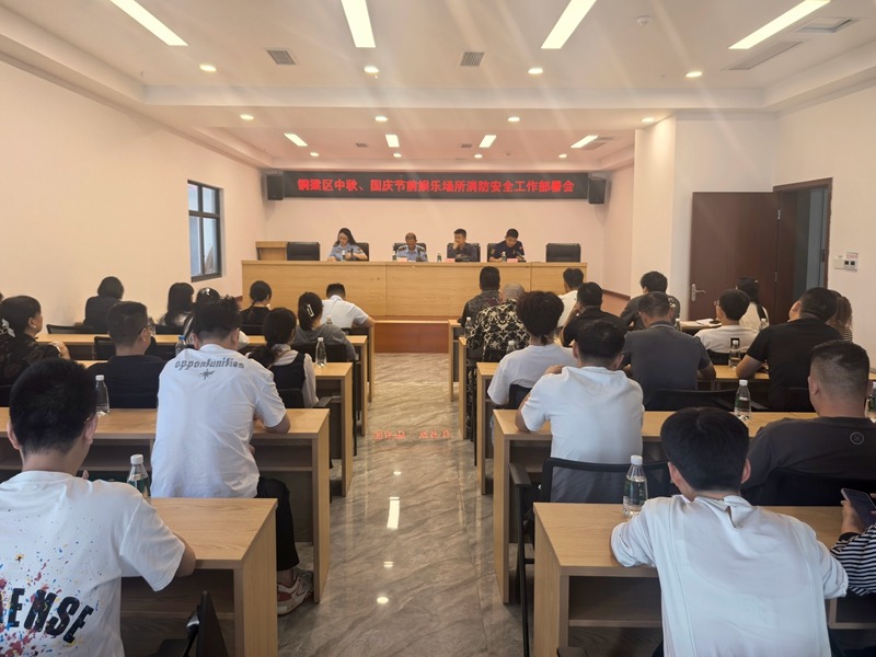 9月24日,铜梁区消防救援局联合区文化旅游委召开中秋、国庆节前歌舞、剧本娱乐经营场所消防安全工作部署会。