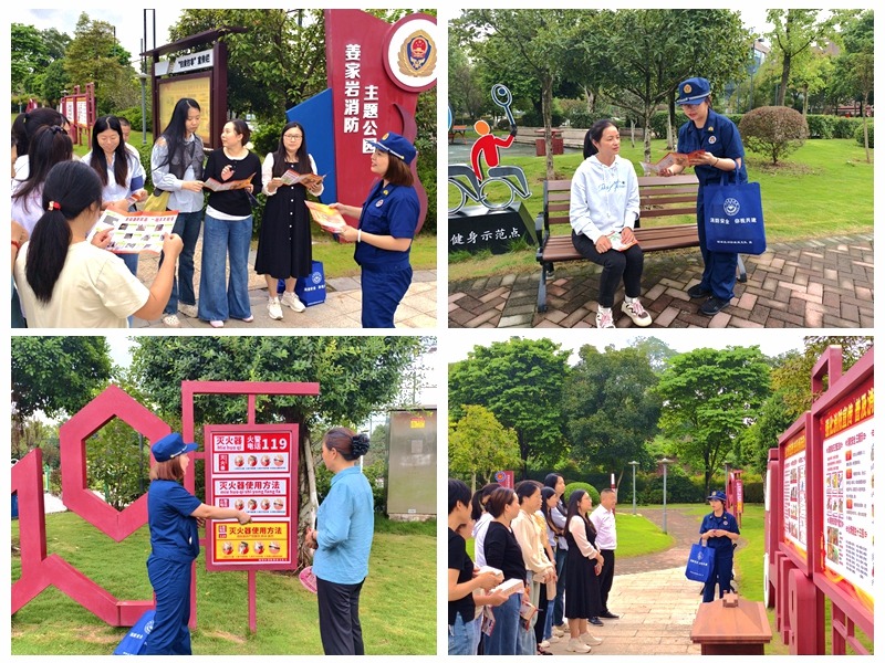 为确保国庆中秋“双节”期间社会面火灾形势持续稳定,近日,支队联合姜家岩社区工作人员深入辖区消防主题公园开展消防宣传科普活动。