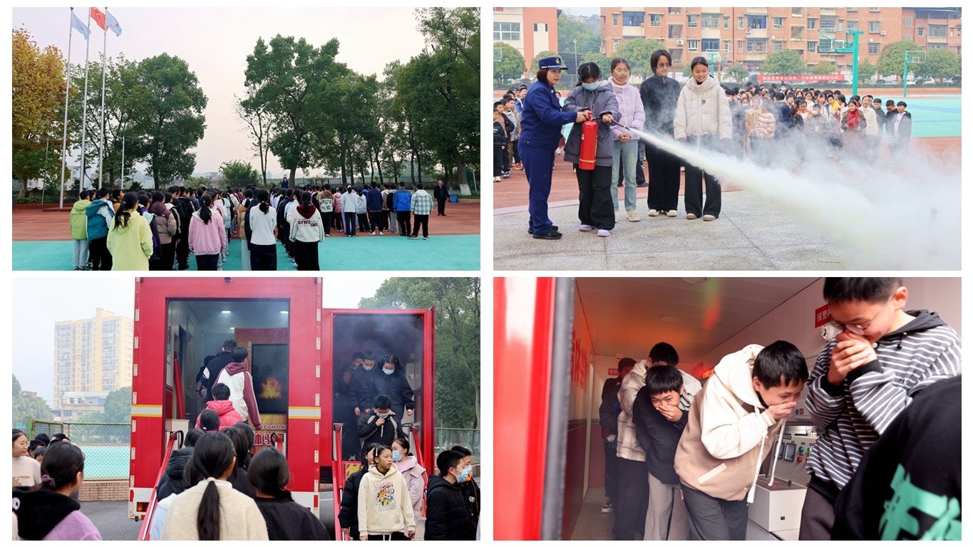 培训中,讲师结合校园火灾特点,讲解宿舍违规电器危害、教室电路检查、火灾报警及逃生原则等常识,并设有奖问答,学生踊跃抢答赢消防礼品,强化知识记忆。随后,讲师现场演示了干粉灭火器 “拔销、对准、按压、扫射” 操作,强调上风方向、对准火源根部等要点,学生分组在指导下实操灭火,提升初期火情处置能力。活动尾声,学生通过消防宣传车浓烟逃生系统体验,在模拟烟雾环境中,按 “弯腰低姿、湿毛巾捂口鼻” 要领逃生,掌握浓烟逃生技巧。