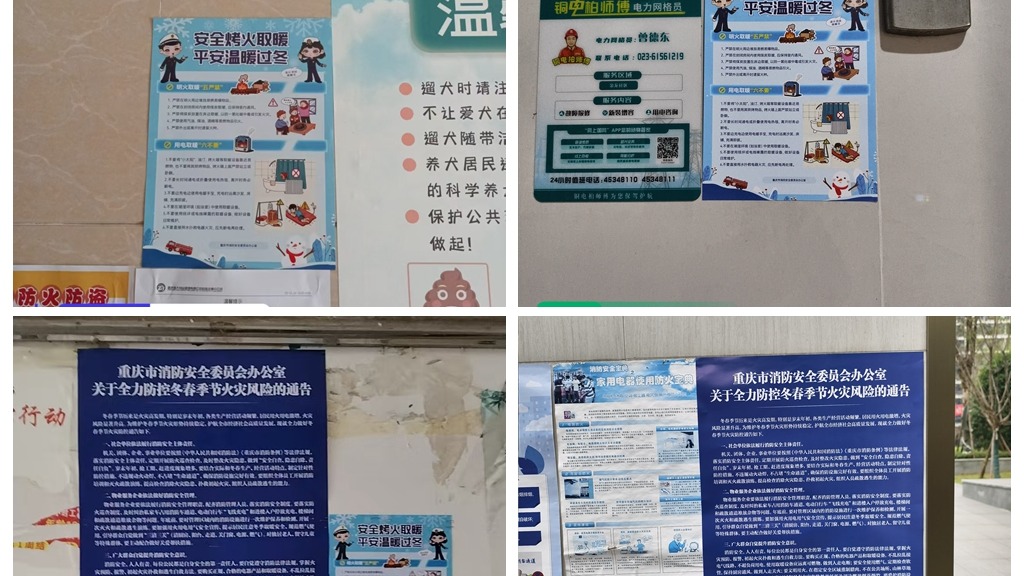 近期,铜梁消防结合冬春火灾防控工作特点,在全区住宅小区开展消防海报标语张贴悬挂行动。