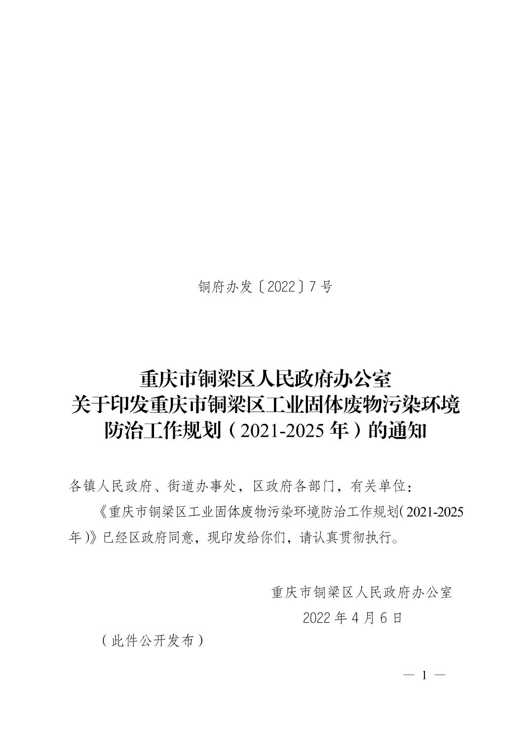 重庆市铜梁区人民政府办公室关于印发重庆市铜梁区工业固体废物污染环境防治工作规划(2021-2025年)的通知.doc