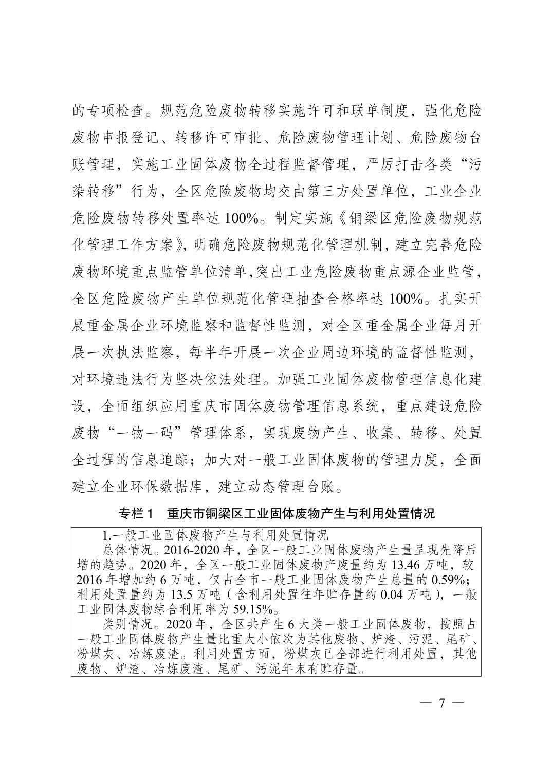 重庆市铜梁区人民政府办公室关于印发重庆市铜梁区工业固体废物污染环境防治工作规划(2021-2025年)的通知