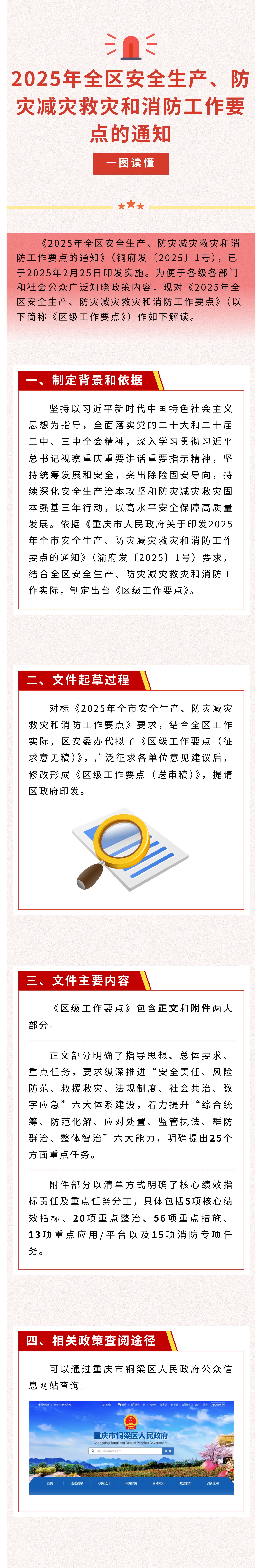 重庆市铜梁区人民政府关于印发2025年全区安全生产、防灾减灾救灾和消防工作要点的通知