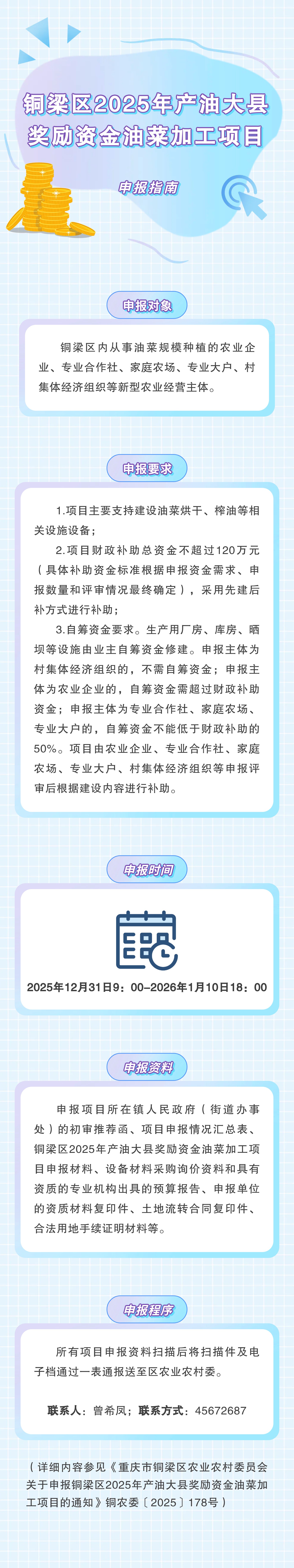 铜梁区2025年产油大县奖励资金油菜加工项目申报指南