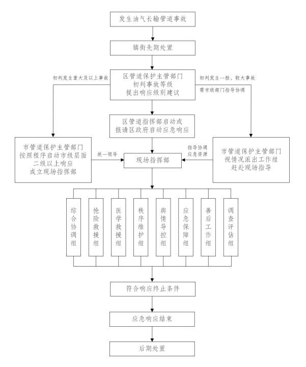 区管道指挥部即为现场指挥部,负责组织、指挥本行政区域内事故应对处置工作。若市级层面成立现场指挥部,区管道指挥部服从统一领导。