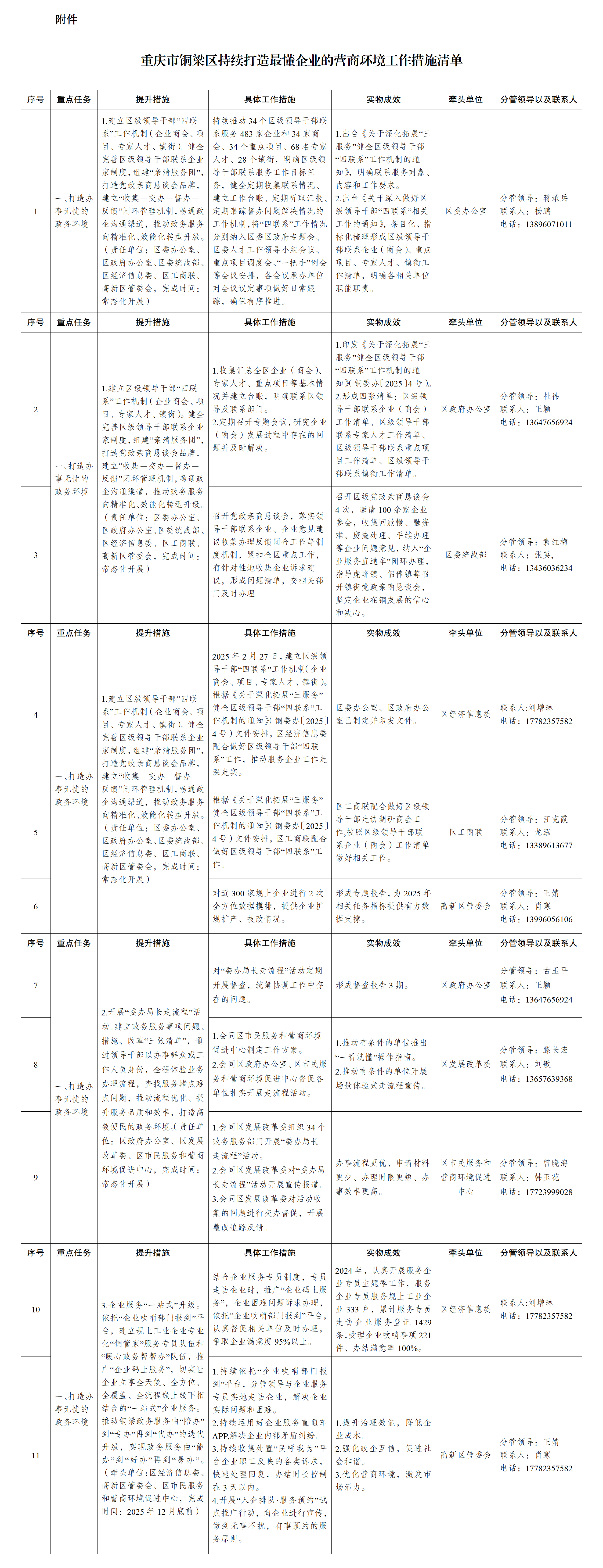 附件:重庆市铜梁区持续打造最懂企业的营商环境工作措施清单