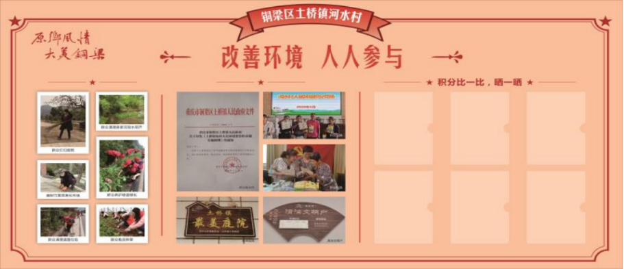 (2)亮分环节。每月一亮,每月20日前完成亮分环节。一是村级亮分。各村在村办公室设置亮分公示栏,张贴《铜梁区虎峰镇XX村农村人居环境整治积分管理个案台账(附件2),按时公示本村所有农户当月积分情况。二是户级亮分。在农户家门口悬挂积分牌,积分牌内放置《铜梁区农村人居环境整治积分存折》(附件3),公示农户日常积分情况。让积分既亮在公示栏、积分牌上,也亮在群众心中。公示栏由村统一制作,具体可参考《积分公示栏参考模板》(附件4)。积分牌和积分存折由区农业农村委统一制作、镇统一发放。