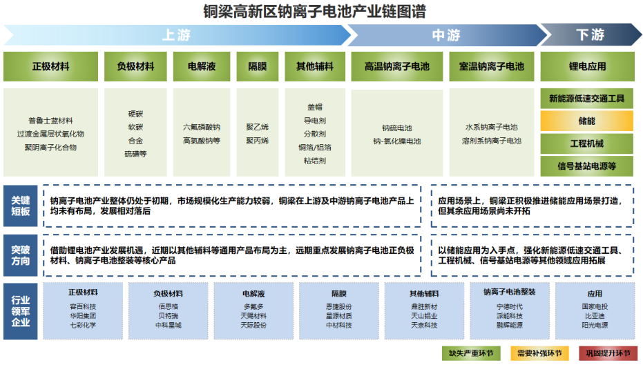 钠电池领域[16]——依托艾玛等一批龙头企业推动钠电池技术在小型乘用车、电动车领域加快实现产业化、规模化应用。以产业链为带动引入前瞻布局一批钠电池核心生产企业,鼓励域内锂电池生产企业积极拓展钠电池业务板块。重点发展钠电池整装、钠离子正极材料、负极材料、铝箔等。