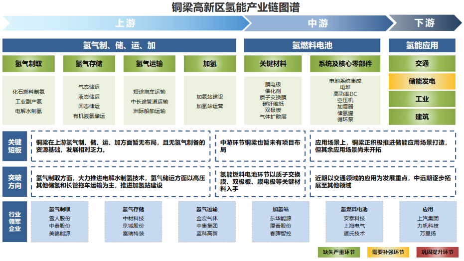 氢能领域——以制氢、储氢装备制造为重点,推进在公交、物流、环卫等领域开展试点应用,发展高压储氢罐、加氢站建设、氢燃料电池系统及零部件(质子交换膜、双极板、循环系统、电堆)等。