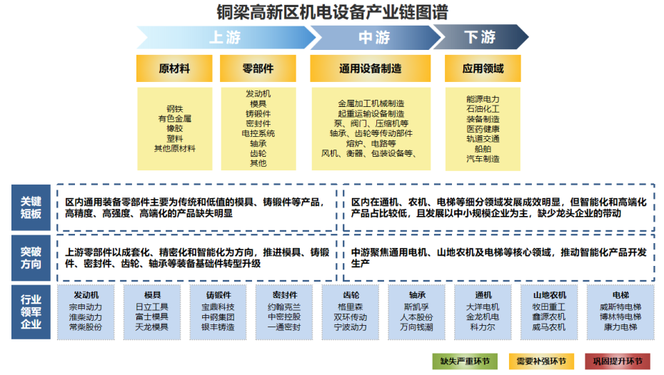 坚持重点突破,整体提升。坚持优势优先,加快突破重点领域和关键环节,切实补齐短板、夯实基础,以新型储能、智能网联新能源汽车零部件和摩托车为突破,强化产业链协同发展,发挥主导产业和龙头企业带动作用,带动铜梁工业产业整体能级跃升,抢占产业发展制高点,切实提高工业整体发展水平。