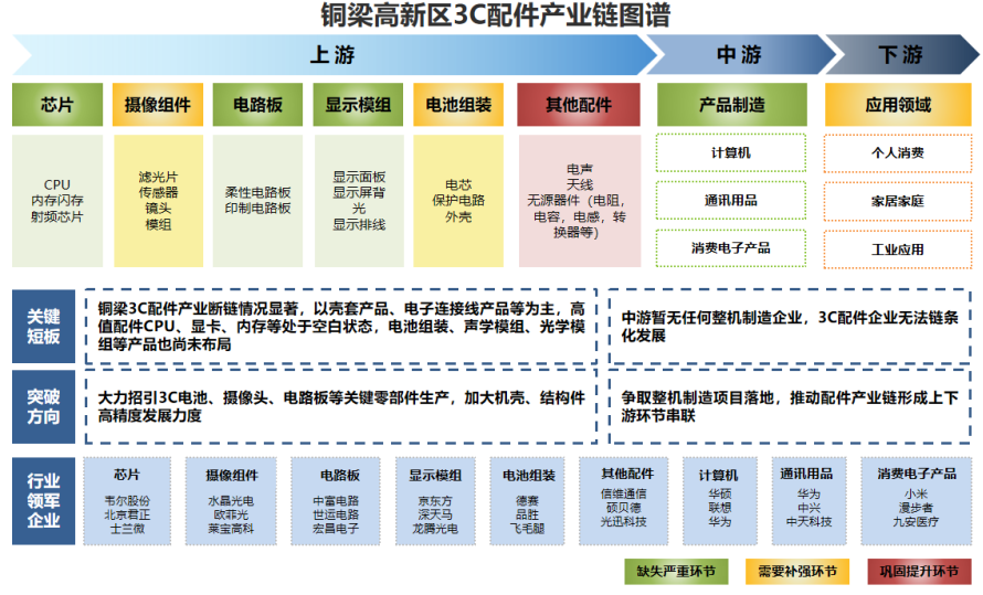 国家重要先进制造业中心渝西地区重要承载地。紧密围绕全市“33618”现代制造业体系谋篇布局,重点发力新型储能、智能网联新能源汽车零部件和摩托车两大主导产业,在全市产业布局中找准铜梁高新区落位环节,为全市建设国家重要先进制造业中心赋能助力。