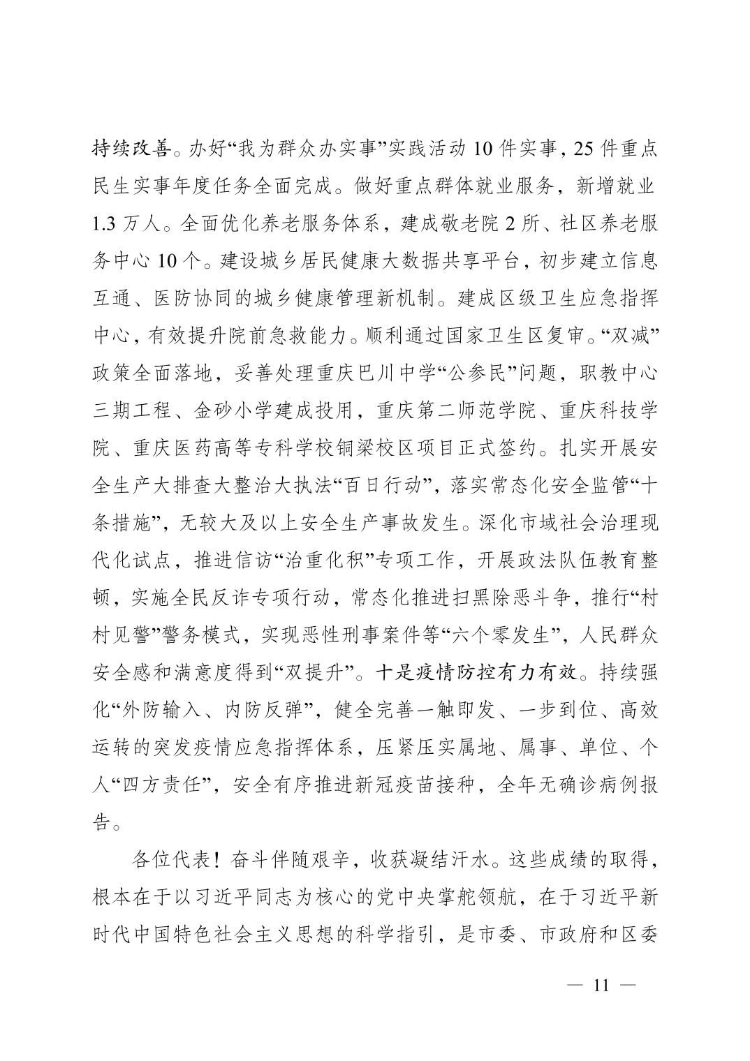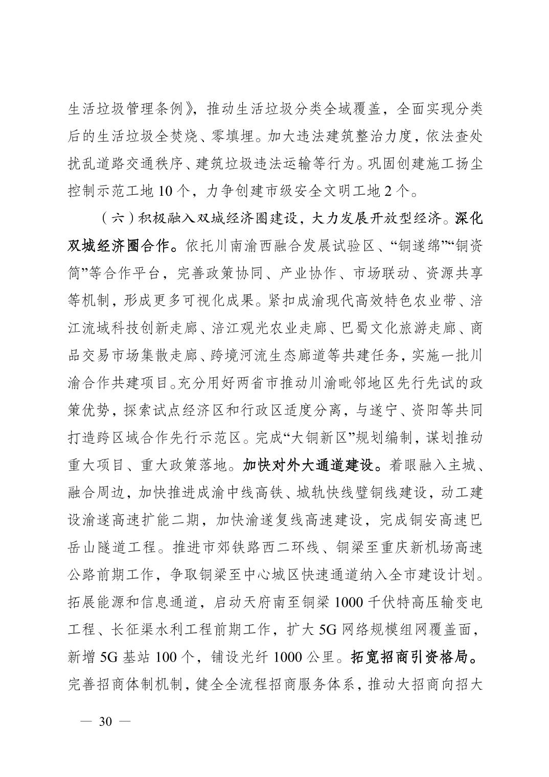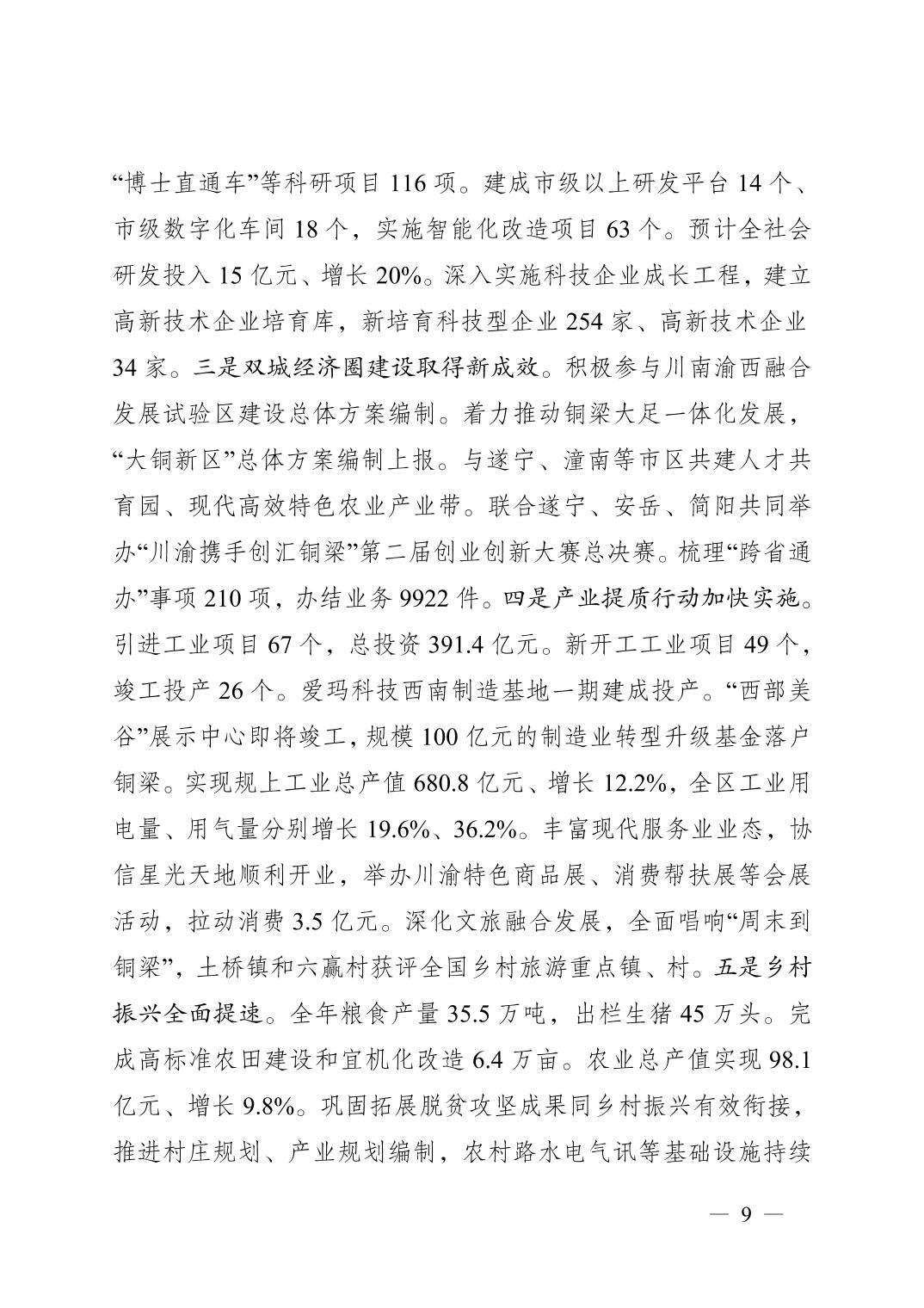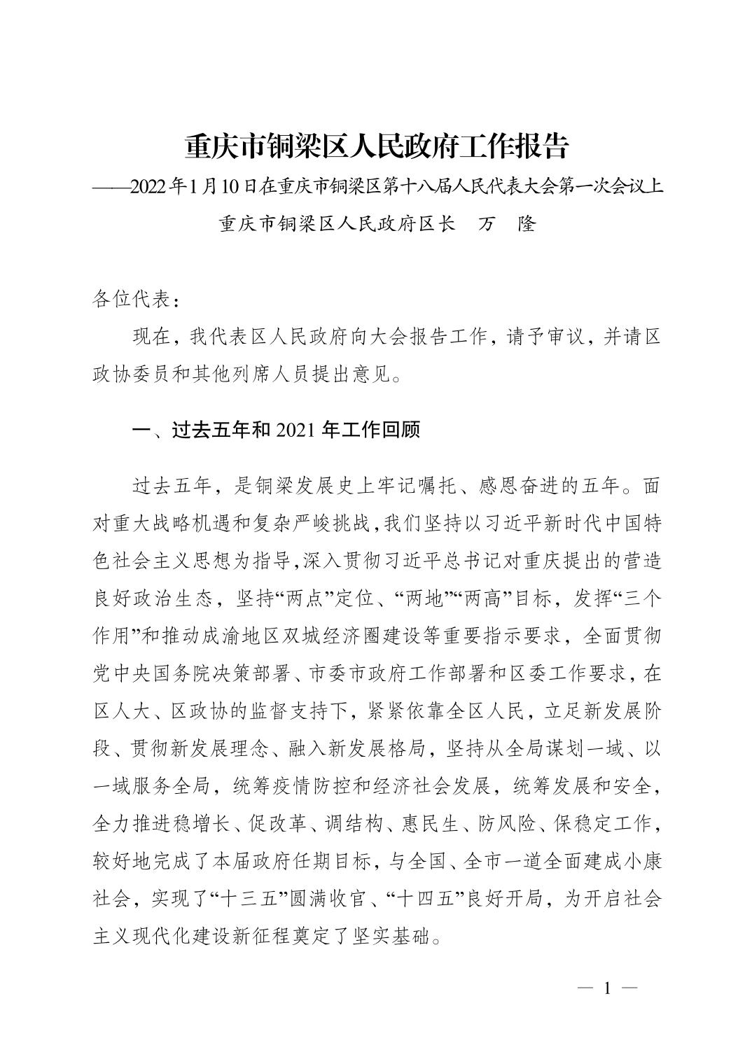 重庆市铜梁区人民政府2022年政府工作报告