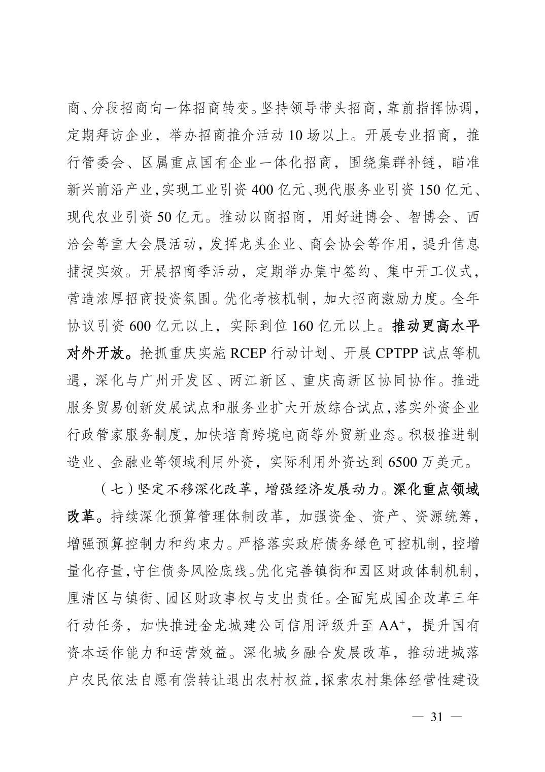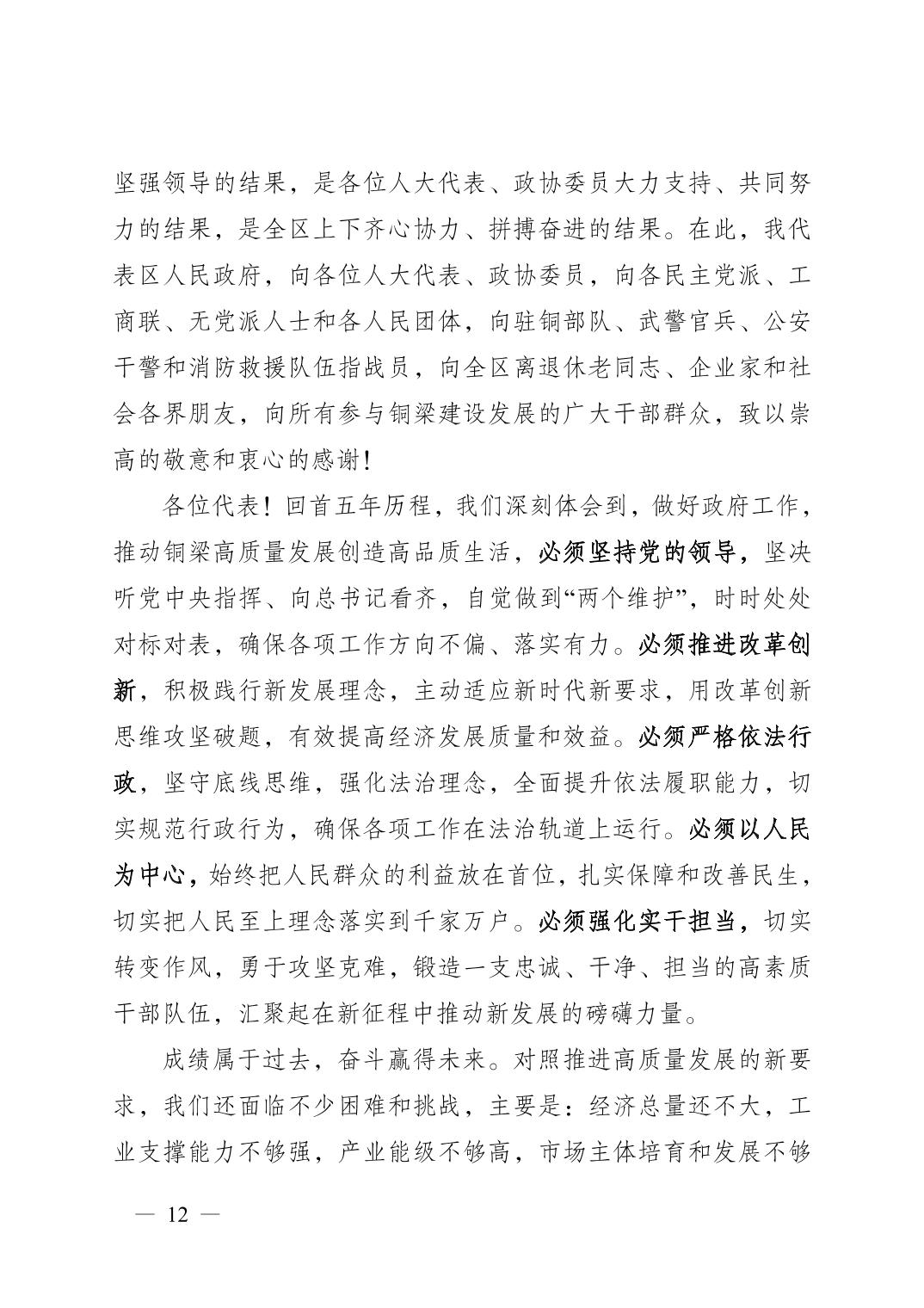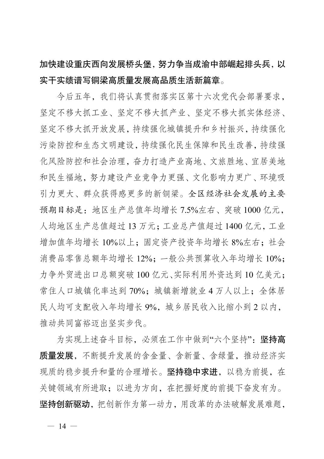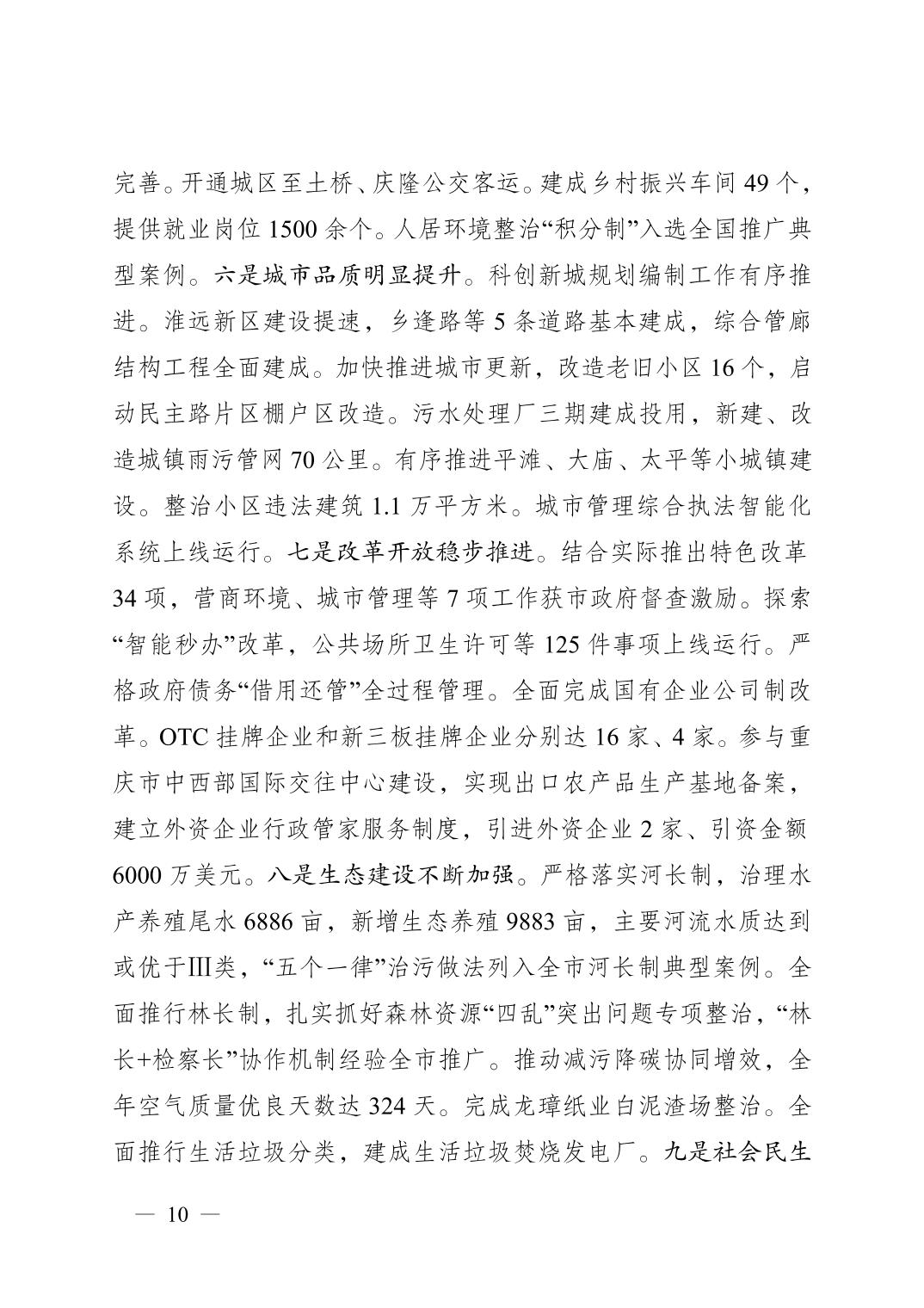 重庆市铜梁区人民政府2022年政府工作报告