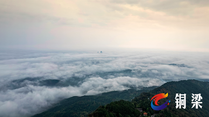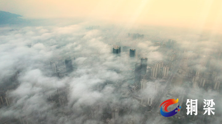 近日,铜梁城区出现平流云景观,层层白色的轻雾缓缓流动,城区高楼被雾气包围或笼罩,如白色的轻纱浮荡飘动,时隐时现,宛如仙境。