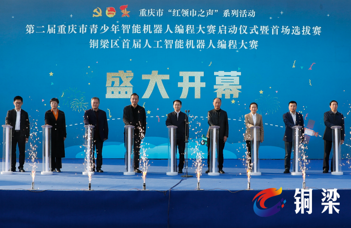 区委副书记、区长万隆出席启动仪式并宣布第二届重庆市青少年智能机器人编程大赛暨铜梁区首届智能机器人编程大赛开幕。市委宣传部二级巡视员蒋大权,市教委副主任杨卫军,市科技局党委委员、二级巡视员吴序,团市委副书记杜远;区委常委、组织部部长何晓萍,副区长陈庆华出席启动仪式。