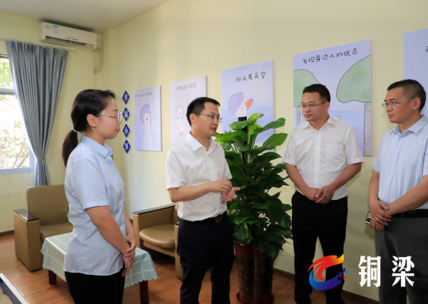 走进铜梁二中,万隆一边参观校园、一边听取学校教育教学、心理课程开设、工程扩建项目、文化墙建设等工作汇报,全面了解学校基础设施、办学规模、特色教学等情况。